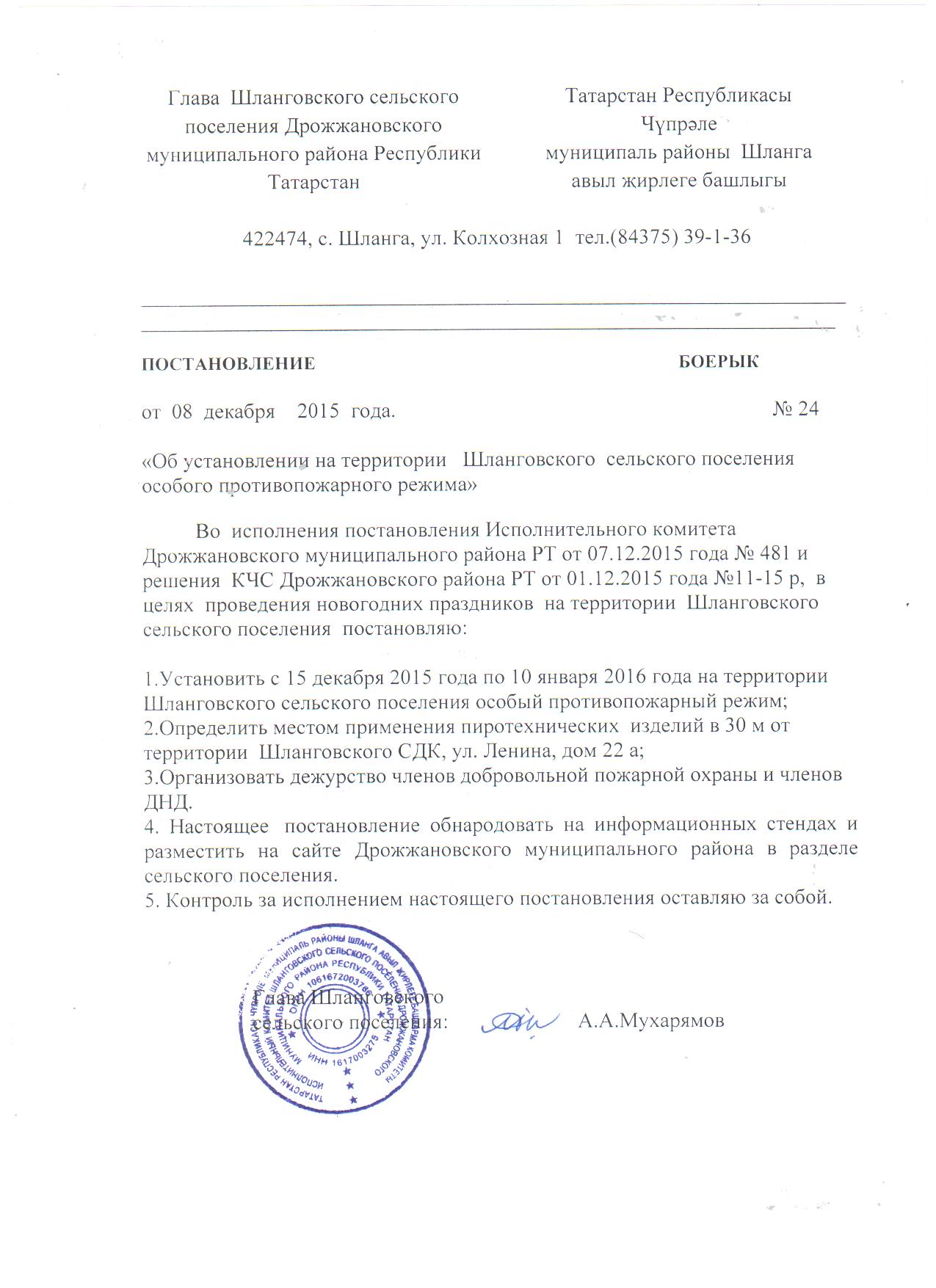 Устав Шланговского сельского поселения Дрожжановского муниципального района Республики Татарстан