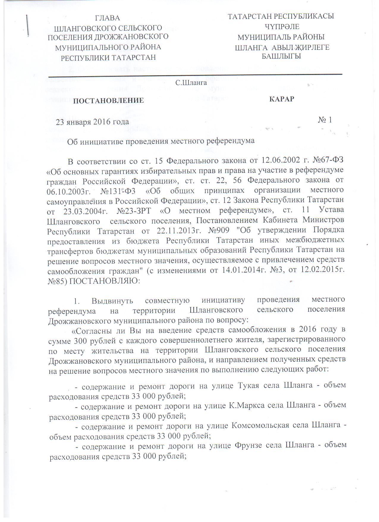 Устав Шланговского сельского поселения Дрожжановского муниципального района Республики Татарстан