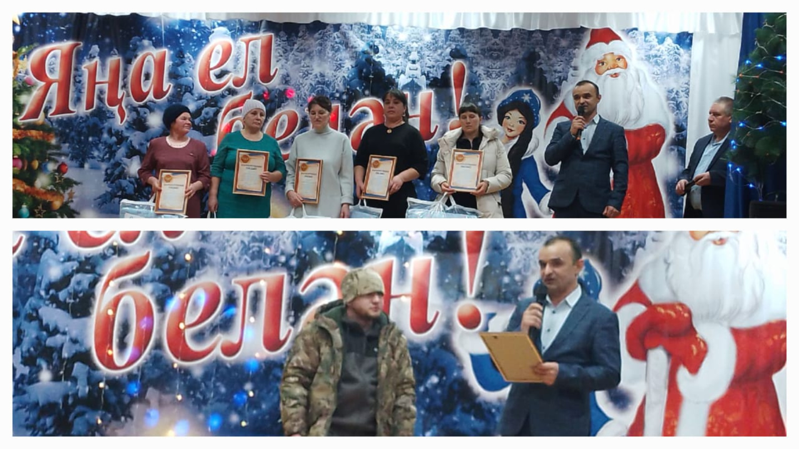 Шланга авыл җирлеге башлыгы Якупов И.И. махсус операциядә катнашучыларның гаиләләрен һәм волонтер Салимзянов Ранилны Яңа 2025 ел белән тәбрикләде һәм бүләкләр тапшырды.