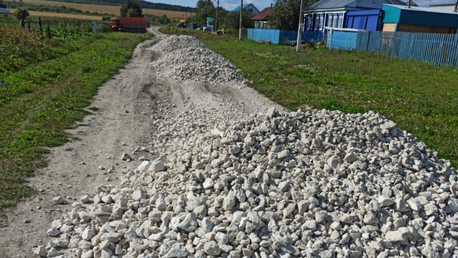 Шланга авылында үзарасалым акчасына авыл эчендәге юлларга таш салу башланды.